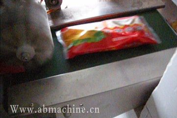 这是我公司客户的一个食品加工厂,使用的是SMZ-420枕式包装机。水饺每八个被放进一个托盒的包装壳,这样子,就成了一个矩形形状的物体了,方便进机包装。紧接着,把包装盒放进轨道中,枕式机迅速跑动起来,水饺自动完成了包装,袋,切割的全过程。本次的包装样品完成的非常的漂亮,水饺整齐地放入包装袋中,切口处呈锯齿状,切口十分平整