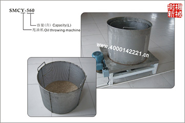 此甩油机与SMC-645成型机和SMCJ-35搅拌机配套使用,利用离心力,去除掉瓜或花生油炸好后的残留油份.配套的两个物料框可以直接用于油炸时使用. 配套成型机使用时,刚好半袋瓜子25斤炸一次,甩一次油,这样循环操作