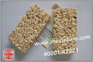 由我公司研发的全自动米花糖、米通成型机,全国的机械柔压方式,使成型更规格,更美观;