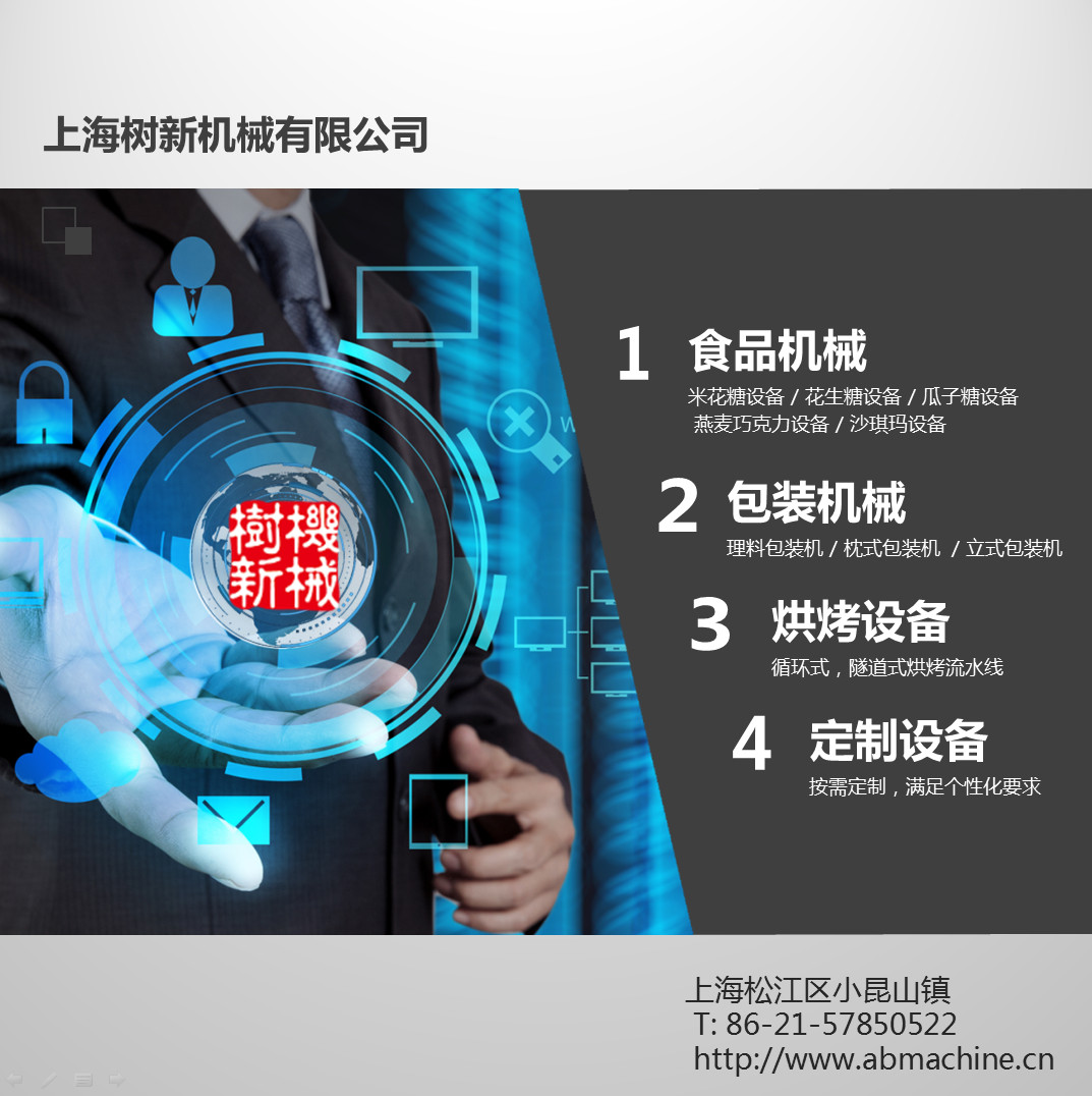地址:上海松江科技园区小昆山镇镇中心路399弄10栋SMC-645 成型机(生产各种形状的瓜子糖,米花糖,花生糖)